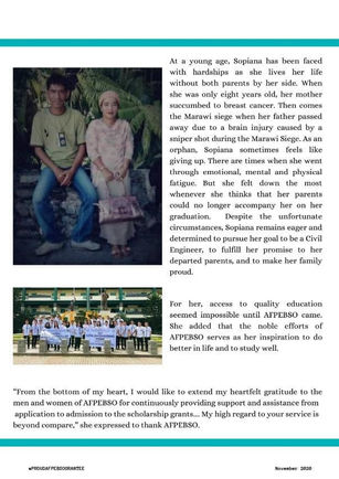 We look for potential partners and sponsors who would help us cater the needs of the dependents. There are also some organizations that are consistently supporting our cause and their help has been part of AFPEBSO’s lifeblood. We also encourage private institutions to provide slots for military dependents and we also seek help from organizations and companies to sponsor the education of our grantees.